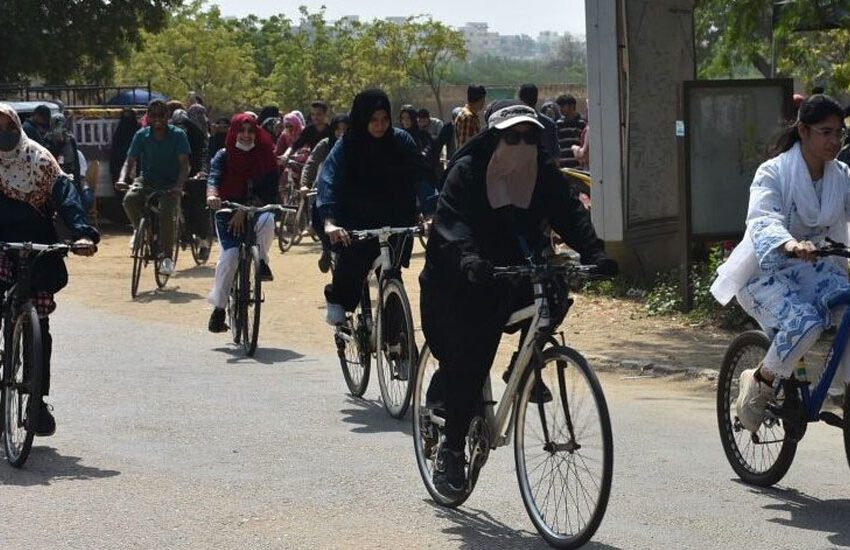 Karachi University, in a collaborative effort with the Centre for Excellence for Women’s Studies, the Climate Action Centre (CAC), and Vlektra, recently organized a noteworthy event to encourage eco-friendly transportation among students. The initiative primarily focused on raising awareness among female students about the environmental benefits of sustainable transportation, which included teaching them to ride bicycles and introducing electric motorbikes (e-bikes) with zero carbon emissions.